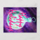 Jorden som julgrypsdekoration med "God Jul" tryckt över sig på ett vykort.
