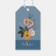 Jordtoner abstrakt blommor bouquet, monogram presentetikett