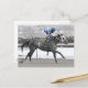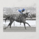 Vintern tävla på det historiska Aqutecht Racetrack, hem för de prestigefyllda Wood Memorial-insatserna. Jockey Junior Alvarado har kontroll över fullt eftersom han med sin mäktiga buskkolt Mo Flash kan ta ledningen. Med blått och vitt polk och silke är rider på väg till seger. Fotot är i svartvitt utom för den blå färg stänk på hans silke. Ryttaren blir lättare upp och står i omrörningen när han närmar sig avslutat linje. Fleetbild