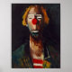 Poster Joseph Kutter's 'Tête de Clown' eller 'Head of a Clown' (1937). En mörk porträtt av en rödnosad man med clown makeup och orange hår. Och en färglös utrustning.