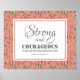 Snyggten CHRISTIAN POSTER med inspirerande citat som säger STRONG OCH COURAGEOUS ÄR DEN KVINNA SOM OROAR LORD, som bygger på Joshua 1:9. Bakgrunden är ett lätt PEACH-blommönster med GRÅTT-typografi. Perfekt gåva till födelsedagar, jul, Mors dag och hela året. Annan tillgänglig färg.