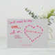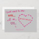 Enkel Valentine uttrycker kärlek genom en stammande beundrares eller älskares ord. Ljusgrå bakgrund ger en fin kontrast till de stammande orden i nyanser av fuchsia, rosa och rött. "Jag vill bara säga..." "um..." "ja," "eh..." "ÖH..." "Jag..." "*djup andetag*" och inuti den prickiga hjärtformen, orden "jösses jag gillar dig!" Baksidan av kortet är vit med orden "ja, det gör jag verkligen!"