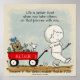 En röd vagn... Vagnens sida har initialer, B.I.T.U.B., för att tro på det otroliga. Vagnen är fylld med gamla och nya vänner. Denna bild av roligten visar David A. Carrizales ord att livet är bättre när vi tar med andra på resan med oss. Teckning är av Christie Black.