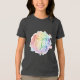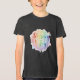This vibrant T-shirt design, featuring the text "Journey to Joy.", is an explosion of color and positivity. The phrase is rendered in a playful, flowing rainbow script, with each letter transitioning smoothly through bright hues from warm reds/oranges to cool blues/purples. Scattered around the text are small, whimsical multi-color elements like hearts, stars, and swirls, all set against a soft, light-colored background. It’s a cheerful, uplifting, and abstract design that captures a feeling of happiness and optimistic movement.