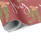 Den här julomslutningen pappra ger ord "glädje" i ett trendig med vit kalligrafi stil på mörkens röda bakgrund. Utformningen accentueras med vattenfärgsmålade gröntar med en båge.