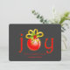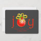 Ett platta julhälsningskort i stil i snyggt, med mörk grått-bakgrund, med röd grafisk textläsglädje, med utsmyckningen att det är en röd dekorerad julprydnad i boll. Anpassa den röda texten, grund på kortet till kostym som ditt företag behöver.