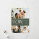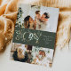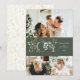 Elegant julkort med 3 foton och en ren och modern stil, med guld- och grönfärgade grafikdetaljer och ett vinterbotaniskt guldfärgat mönster på baksidan.