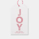 JOY Foliage Typography Red Juletiketters | Lägg till en festlig helgdag med märkrn för julklappar och party favors med anpassadets gåva. Den har JOY foliage dekorativ typografi och festive mönster. Du kan ändra mönster till ett annat foto eller en vit bild om du vill att den ska vara tom. Andra färg finns tillgängliga.