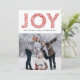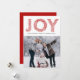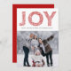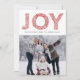 JOY Foliage Typography Red jul Photo Helgdag Card | Skicka julhälsningar med det här visuella helgdag-fotokortet. Den har JOY foliage dekorativ typografi och festive mönster. Du kan ändra mönster till ett annat foto eller en vit bild om du vill att den ska vara tom. Andra färg finns tillgängliga.