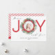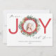 En modern helgdag med en traditionell beröring med ord JOY i fetstilt typografi med en julkrans, blandad med elegant typografi som kompletterar frasen "Fred, glädjen och Kärlek". Anpassa med bild och 2 linjer text. Matchande utformningar är tillgängliga.