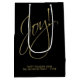 Den här presentsäcken med elegant helgdag har en minimalistisk typografi med ett enkelt ord: Joy! Påsen är svart och skriptet är skrivet i ett modernt guld-teckensnitt. Det finns utrymme för ett personligt budskap från kort. Sofistikerad och konstnärlig underskattad design.