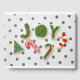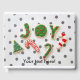 Skicka dina semesterhälsningar i stil med den här julkakan på en polka dots vit bakgrund.