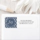 Enkelt skandinaviskt Julgran mönster formar sig i blått och vitt med texten "Joy" i modern typografi. Anpassa bara julens returetiketter med ditt namn och adress. Om du behöver hjälp kontaktar du oss genom butiken.