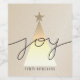 Minimalistiskt, enkelt, elegant, geometriskt guld foil Julgran i kombination med kort hälsning : Joy. Perfekt vin-etikett med eget namn för vinterhelgdagar.