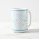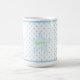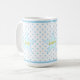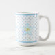 Vacker mugg med stjärnor, ljusblå prickar och personlig joy, love, life text.