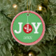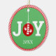 Den här vackra prydnadstexten i Julgran präglar texten "JOY" med en händer och logotyp i ryggrad som prydnadsföremål för julen som "O" på gröntens bakgrund med röd och vit rand-accent. Anpassa med året och lägg till din egen anpassningsbar om du vill att utskrifter ska ske på baksidan!