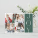 Sprid JOY i Julhelg med dessa moderna Helgdagskort i julafton. Utformningen har en 4-fotokollage, ett festive grönt block med text med vit elegant - JOY, familjen namn och året. I motsatt riktning kan du anpassa ditt eget christmas önskemeddelande och namn/s.