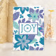 Julkortet har en modern utformning av botaniskt blommönster med JOY-meddelande på framsidan. Anpassa kortets insida med egen text eller ta bort det för ett tomt kort.