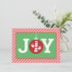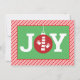Det här platta julkortet för julgranar är ett fult skal som blockerar texten "JOY" med en logotyp för händer och ryggkotor som prydnadsföremål som "O" på en röd, rand bakgrund med gröntens bakgrund. Kortets baksida innehåller ett anpassade från din praxis!