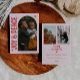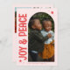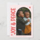 Vitmiskt och minimalt fotokort för helgdag med rosa Arch ram med en typografisk text som säger "glädje och fred". Du kan lägga till totalt 3 foton på det här kortet på framsidan och baksidan.