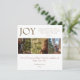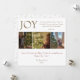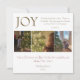 Det här julkortet har en enkel utformning med "Joy" i ord som huvudfokus och ett guld- och burgundssystem i färg. Vännen från Luke 2:10 - "Och ängeln sa till dem: "Rädsla inte, för behold, jag ger dig bra nyheter om underbar glädje som kommer att vara för alla människor", sitter på den övre högerna i ett litet, känsligt typsnitt. Det finns utrymme för tre familjefotografier och en möjlighet att skriva ditt eget hälsning. Jag önskar er all välsignelse av säsongen!