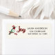 Adressetikett för Hummingbird med ruby-trottad "Santa" Hummingbird och ord JOY. Anpassa den genom att lägga till ditt namn och adress.