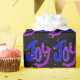 Lila, rosa och blåaktig text på svart med snöflingor. Bakgrunden till färg kan ändras.