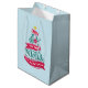 Giftväska med roligt och vismbild. Typografi i form av ett Julgran med vissa julklamrar och en stjärna överst. Inuti finns ord: Joy to the world.