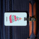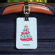 Ett bagagemärke med roligt och visuell illustration. Typografi i form av ett Julgran med vissa julklamrar och en stjärna överst. Inuti finns ord: Joy to the world.
