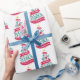 Mönstrad förpackning papper med en roligt och visuell illustration. Typografi i form av ett Julgran med vissa julklamrar och en stjärna överst. Inuti finns ord: Joy to the world.