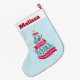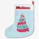 Personlig för julstrumpning med namn med en roligt och visuell illustration. Typografi i form av ett Julgran med vissa julklamrar och en stjärna överst. Inuti finns ord: Joy to the world.