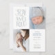 Julkortet för födelseattentat innehåller frasen Joy till vår värld i hand med bokstäver som är accentuerade med stjärnor bredvid två foton av din nyfödd bebis och gott om utrymme att lägga till i din nyfödds födelsedag och födelseinformation i namn.
