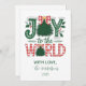 A cheerful holiday design featuring festive typography with plaid, holly, and pine details that spell out “JOY to the WORLD.” Perfect for Christmas parties, family gatherings, or festive events, this joyful invitation captures the warmth and spirit of the holiday season in a timeless, modern way.
