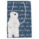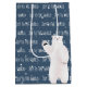 Polarna bär på vitt JOY TO THE WORLD text med snöflingor och stjärnor på blå bakgrund. Text kan redigeras.