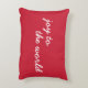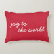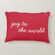 I snyggt har helgdag dekorativ kudde jultalesättet Joy to the World i rent röd och vit manustypografi.