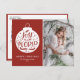 Viktigt och rustiskt vykort för julfoto för din familj och dina vänner. Den har ett rostiskt helgdag, "Joy to the World", ett modernt kalligrafiskt citat med snö accents och röd bakgrund. Anpassa genom att lägga till foto, namn, år och andra detaljer. Det här handskrivna julvykortet finns i andra kartonger.