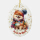 På denna söta julprydnad bär en liten röd pommernisk valp vintern hatt och scarf, och är inslagen i Helgdag i ljus. I grund finns röd text som för närvarande säger "Joy to the World", men du kan lätt ändra den eller anpassa den. Ett guld-konfektydigt bakgrundsmaterial som ge har lagt till intresse för utformningen. På baksidan finns en guld-konfetti ram runt en vit oval som innehåller ytterligare fyra anpassade text fält. Det finns många fler Pommern-bildprodukter, liksom andra hund aveln-produkter, i Hund Village. AI-generativ innehåll användes.