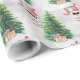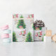 En lustig papper omslutning. En söt lama med svarta solglasögon och en röd tomhatt. Stå bakom en Julgran med festligt presenter. Ord Joy skrev över huvudet i ett färgstarkt helgdag. Borgbakgrund i silver. Könsdesign och roligt jultema.