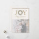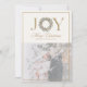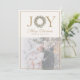 Elegant-helgdag-kort med ord JOY med en julkrans som "O" och ett anpassade-familjfoto nedan. Klassiska accenter från guld och tidlöst skript gör denna design till ett vackert sätt att sända varma julhälsningar till nära och kära. Perfekt för att dela helgdag med stil.