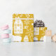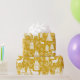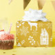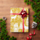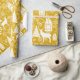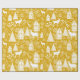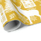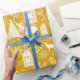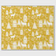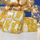 Detta pappra paket har en modern utformning med olika julmotiv: Julgranar, hus, raindeer, candy cane, snöflingor, grenar och ord Joy i vitt på gultens guld bakgrund.