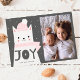 Känn dina barns bild med det här fina kattunge-grafikkortet till jul i år! Det finns en illustration av en vit katt som bär en rosa beanie och trikå med texten "JOY" på hennes kropp. Din familj namn kan tryckas på grund. Bredvid bilden finns ett familjefoto som lätt kan bytas ut mot ett eget foto!