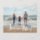 Julvykort i ett modernt foto av "Joyeaux Noel"-helgdag. Lägg till fotot på framsidan och returadressen och hälsning på baksidan.
