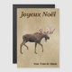 En "vintage look"-digital målning av en bull-mos (Alces Alces Alces Alces) som läggs ovanpå en gammal bakgrundsbild för papper eller parchment. Fransk som läser "Joyeux Noё l" visas också. Lägg till ytterligare text.