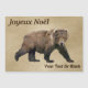 En digital målning av ett Kodiak Bear på en neutralt eller gammal papper bakgrund. Franskens text som läser "Joyeux Noё l" visas också. Lägg till ytterligare text. Kodiakbjörnen (Ursus arctos middendorffi), en underart till brunbjörnen eller grizzly, är världens största björn. En fullt som odlas kan vara över 10 meter lång när han står upprätt på sin ben och väger över 1500 pund - en syn som verkligen kan skönjas. En björn i Bismarck, North Dakota zoo, beräknades ha vägt så mycket som 2 400 pund. björnarna bor på öarna i Alaska's Kodiak Archipelago. I dag finns det ungefär 3 500 kodiakbjörnar, och deras antal ökar på grund av den i allmänhet utmärkta villkor i deras livsmiljö, inklusive tillräckligt med sprit. De kallas "takuka-aq" i Alutiiq, det språk som talas av folkets invånare i området. Man tror att björnarna har varit isolerade där sedan slutet av den sista isåldern för över 12 000 år sedan. Även om de är det största landlevande köttätaren omfattar deras kost stora mängder gräs, andra växter och bär. I dag finns det ungefär 3 500 kodiakbjörnar, och deras antal ökar på grund av den i allmänhet utmärkta villkor i deras livsmiljö, inklusive tillräckligt med fisk att äta. På grund av mängden livsmedelsresurser har Kodiak mindre hemmaplan än andra brunbjörnar och behöver inte försvara områden. Alutiq-folket jagade björnar för mat, kläder och verktyg. Det krävdes pilar, spjut och underbart mod för jaktutrustning. Björnhuvudena lämnades vanligtvis i fält som ett tecken på respekt för björnarnas anda.