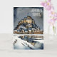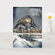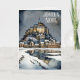 Joyeux Noel Fransk Language Önskemål Julhälsningar kort. En vacker vattenfärgning av Mont St Michel, en berömd Gothic stil Benediktine abbey på ett klippt utkanten av Normandie kusten, Frankrike, en trosbelagd miljö. Vänstern inne i texten "Nous vous souhaitons un joyeux Noël et une bonne année", Fransken motsvarighet till "We want you a God jul and a Gott nytt år". Jag erbjuder också en engelskspråkig version av detta kort.