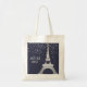 Denna stilfulla toto hänger lös särdrag som en fransk Julhälsningar, med en fauxsilverversion av det Eiffel torn och raddasnön, alla på en midnatt blåttbakgrund.