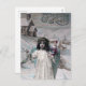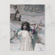 En vintage Fransk julkort från offentligheten. Det är en tjej utklädd till en julängel som bär gåvor.