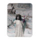 En vintage Fransk julkort från offentligheten. Det är en tjej utklädd till en julängel som bär gåvor.