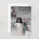 En vintage Fransk julkort från offentligheten. Det är en tjej utklädd till en julängel som bär gåvor.