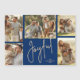 Multi-photo Christmas holiday MAGNETIC cards feature your family name, year and the word Joyful in chic lettering on a blue background. (Paper cards and more colors available in our collection.)
